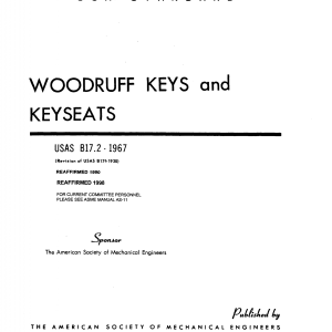 This standard covers data for Woodruff keys and keyseats, including size, type, and tolerances.